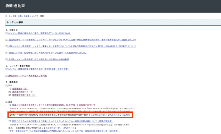 ひとつは、車両台数や稼働状況の報告による安全管理という位置づけです。レンタカー事業の健全な運営状況を行政が把握することは、利用者の安全確保にもつながります。